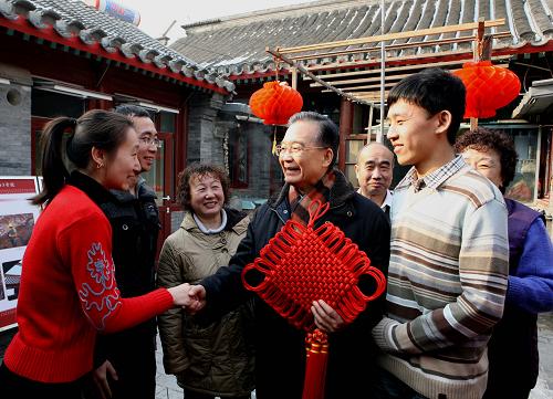 這是溫家寶在前門街道草廠9條3號院看望居民。新華社記者姚大偉攝