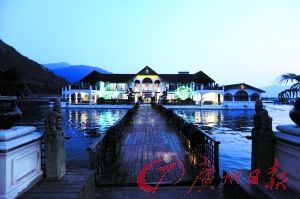 記者留意到,整個建筑多用實木構建成,除花草字畫外,多處還陳列著各式各樣的古董收藏。郭奎章介紹,整個建筑約有7000平方米,共有4間客房,電纜、電視都由水下鋪設管道,從岸上引來。“包括整個建筑的給排水,我們都從海水下面的管道連接到市政管道里,不會產生對海域的污染。”