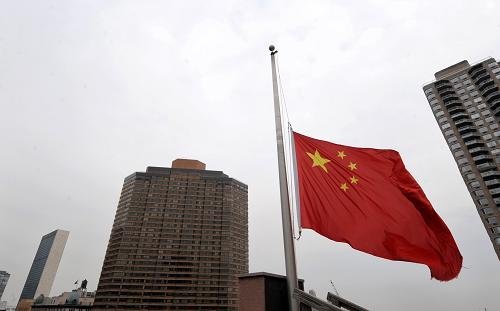 1月19日,在美國紐約中國常駐聯(lián)合國代表團駐地,為悼念在海地地震遇難的八位中國維和警察,中國常駐聯(lián)合國代表團下半旗志哀。新華社記者申宏攝