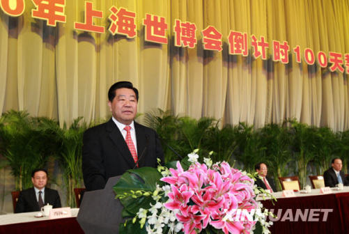 1月21日,中國2010年上海世博會(huì)倒計(jì)時(shí)100天誓師動(dòng)員大會(huì)在上海隆重舉行。中共中央政治局常委、全國政協(xié)主席賈慶林出席大會(huì)并講話。 新華社記者 龐興雷 攝