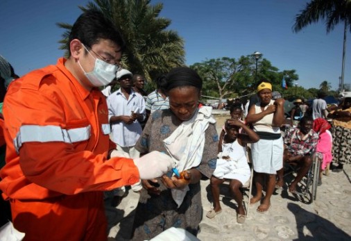 記者:抵達海地后,中國國際救援隊連續奮戰。到19號,他們已經挖出包括聯合國駐海地最高官員赫迪·安納比等7名外國人和8位中國維和警察在內的15具死難者遺體。在殘垣斷壁之間,中國醫療隊開放小型流動醫院,第一個搭起簡易醫療所,救治傷員、消毒防疫。日前,中國國際救援隊受到聯合國秘書長潘基文的高度評價。