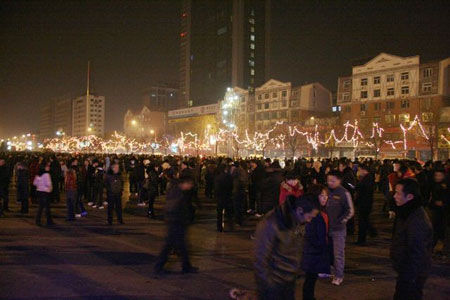 2月20日晚至21日凌晨,由于“地震謠言”,導致山西晉中、太原、呂梁、長治、陽泉等地部分群眾走出家門、躲避地震。事件發生后,山西省迅速通過電視、網絡、手機短信等平臺發布辟謠信息,穩定人心,迅速恢復了生產生活秩序。圖為山西呂梁離石市市民涌上街頭“等地震”。網友供圖