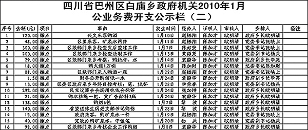 地處川東北的白廟鄉,轄區57平方公里,人口1.1萬,偏遠而貧窮。力推公務開支明細公示的白廟鄉黨委書記張映上對記者表示,自己醞釀這個想法已經五六年了。“當時我還在其他鄉鎮工作,很多老百姓都認為鄉鎮干部的工作就是‘吃吃喝喝’。如果老百姓知道政府是怎么花錢的,可能會讓他們更信任政府,但條件一直不太成熟。”