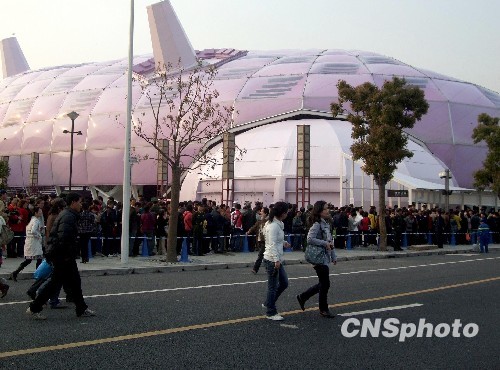 4月23日,上海世博會迎來第三場試運營,首次參與的日本館成為當日最受熱捧的世博場館之一,原定于下午3時正式開館,中午12時就陸續有游客聚集,他們在場外大排長龍,火爆程度令人嘆為觀止。 中新社發 鄭瑩瑩 攝