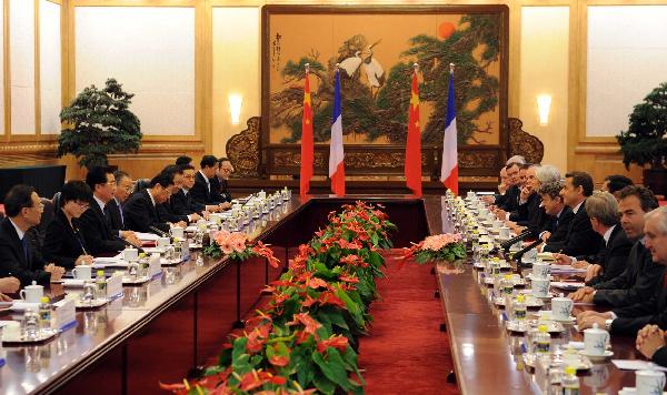 薩科齊表示,中國是法國非常重要的戰(zhàn)略伙伴,在推動經(jīng)濟(jì)增長、全球治理、應(yīng)對氣候變化、維護(hù)世界和平等重大全球性問題上,雙方都需要密切合作。世界上只有一個中國,臺灣、西藏都是中國的一部分,自1964年法中兩國建交以來,法方一直奉行這一政策,沒有任何改變。法方愿意同中方一道,進(jìn)一步發(fā)掘潛力,加強和拓展和平利用核能、航空、交通、環(huán)保、金融、農(nóng)業(yè)、人文等領(lǐng)域合作與交流。今年11月法國將擔(dān)任二十國集團(tuán)峰會主席國,法方愿意同中方密切配合,確保峰會取得成功。