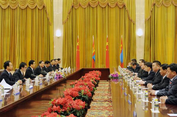 胡錦濤同蒙古總統額勒貝格道爾吉舉行會談