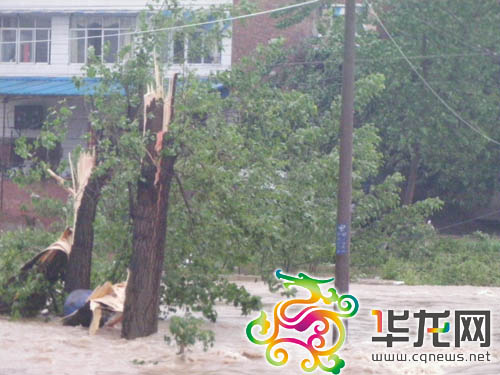 路面積水成河,碗口大的樹被吹斷。徐興渝攝