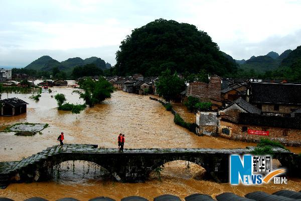 這是5月14日拍攝的發(fā)生洪澇災(zāi)害的湖南省江永縣歷史名村上甘棠村。當(dāng)日凌晨,湖南省永州市江永縣普降暴雨,暴雨引發(fā)的洪水造成江永縣千年古村上甘棠村發(fā)生洪澇災(zāi)害,部分村民被洪水圍困。當(dāng)?shù)毓裁窬⑾拦俦皖A(yù)備役民兵迅速行動(dòng),把洪水圍困的村民轉(zhuǎn)移到安全地帶。上甘棠村是具有湘南建筑特色的歷史名村。新華社發(fā)(黃海 攝)