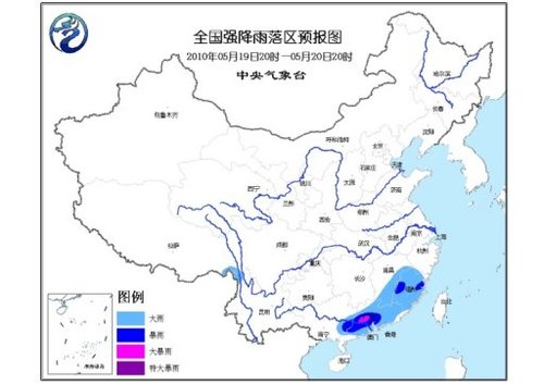 中央氣象臺19日18時繼續發布暴雨藍色預警:預計,19日20時到20日20時,江西東部和南部、福建大部、廣西東部、廣東大部等地有大雨,部分地區有暴雨,廣東西部的局部地區有大暴雨;上述部分地區還將伴有短時雷雨大風或冰雹等強對流天氣。西藏東南部、云南西北部的部分地區有大雨。