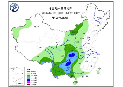 青海玉樹地震災區預報: 26日白天:玉樹有中雨。5月26日夜間至27日白天:玉樹有陣雨。