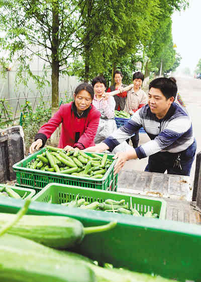 眼下,不少蔬菜瓜果都到了收獲季節,市場供應有了充足的保證。6月1日,四川省岳池縣喬家鎮廖壩村村民把水果黃瓜送上車。肖勇攝