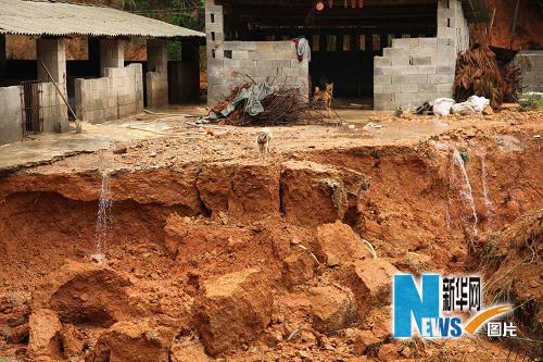 6月15日,南寧市郊的一個養豬場被洪水沖毀。當日,廣西南寧市遭遇暴雨襲擊,氣象部門發布暴雨紅色預警信號,市區部分地段嚴重內澇,市郊一些農用設施被毀。新華社發(唐輝吉 攝)