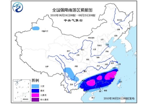 中央氣象臺6月24日06時(shí)繼續(xù)發(fā)布暴雨黃色預(yù)警:預(yù)計(jì),6月24日08時(shí)到6月25日08時(shí),貴州南部、湖南中南部、江西大部、浙江中南部、福建、廣東大部、廣西等地有大到暴雨;廣西東北部、湖南東南部、江西中部偏東和中部偏西、浙江南部、福建中北部等地的部分地區(qū)有大暴雨;上述部分地區(qū)并伴有短時(shí)雷雨大風(fēng)等強(qiáng)對流天氣。