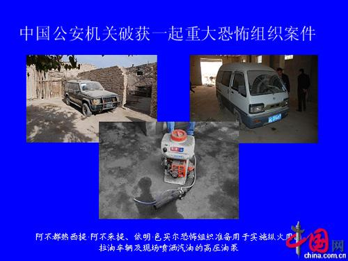 中國(guó)公安機(jī)關(guān)近日破獲一起重大恐怖組織案件,抓獲10余名恐怖組織頭目、骨干及成員,繳獲一批自制爆炸爆燃裝置等作案工具,公安部新聞發(fā)言人武和平在此間舉行的發(fā)布會(huì)上通報(bào)了相關(guān)情況。中國(guó)網(wǎng)現(xiàn)場(chǎng)直播。