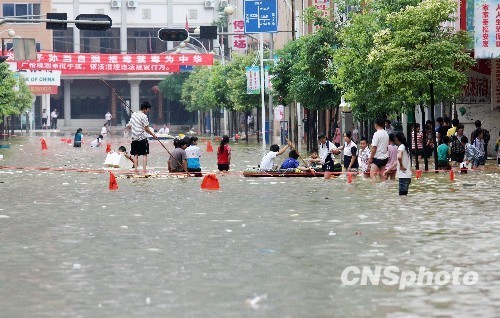 6月28日,廣西鳳山縣消防官兵幫助群眾轉移財產。當日,鳳山縣遭受今年以來最強的暴雨襲擊,全縣9個鄉鎮普降大到暴雨,最大降雨量為中亭鄉204毫米。縣城區部分街道出現內澇,全縣受災人口達5.8943萬人。 中新社發 周恩革 攝