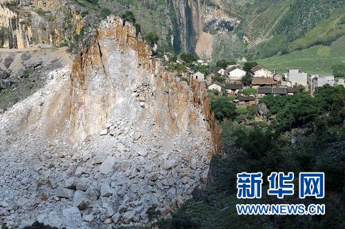 弄林屯位于崩塌山體的東面,而弄林屯背面的山體全部崩塌。村民羅順高告訴記者,山體崩塌時村民聽見兩聲巨響,跑出去才看見山體崩塌,巨石不斷滾落,十幾戶直接相連的民房、水柜、羊圈等建筑也崩塌或者開裂。其中,一戶村民的羊圈和牛圈被淹沒在巨石中。