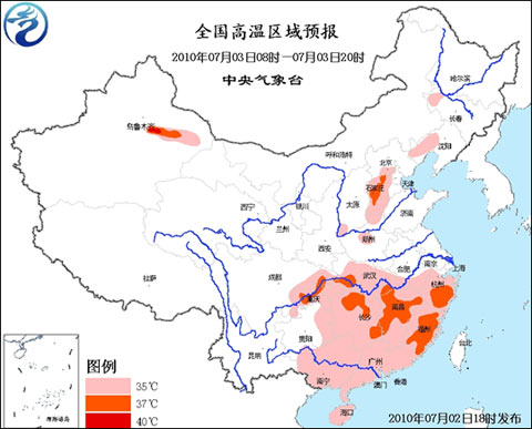中央氣象臺7月3日06時(shí)繼續(xù)發(fā)布高溫藍(lán)色預(yù)警: