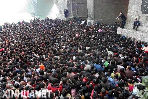 資料圖片 在首屆“河南文化遺產(chǎn)日”的當天,大批市民和附近的群眾涌入龍門石窟景區(qū)(2005年11月攝)。新華社記者王頌攝