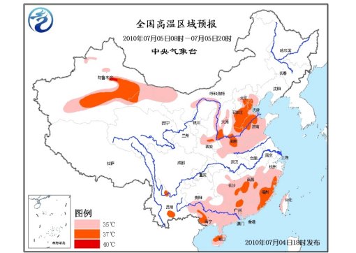 據(jù)中廣網(wǎng)報道,中央氣象臺首席預(yù)報員孫軍介紹說,5日高溫天氣仍然持續(xù)。南方地區(qū)的范圍稍微縮小一些。在江南的東南部、華南還會有35℃-37℃。華北地區(qū)的高溫范圍和強度會有所擴大,在京津、河北、山西南部、山東、河南這些地區(qū)會有35℃-37℃,局部地區(qū)會有38℃到40℃的高溫天氣。