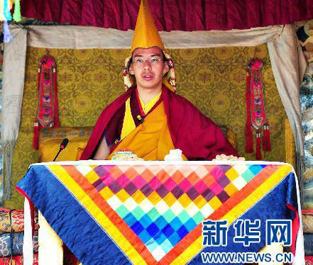 6月15日,中國佛教協會副會長第十一世班禪額爾德尼·確吉杰布在給西藏日喀則扎什倫布寺僧眾和千余名信徒講經。正在西藏日喀則扎什倫布寺舉行佛事活動的中國佛教協會副會長第十一世班禪額爾德尼·確吉杰布,利用14日和15日兩個上午的時間,為扎寺僧眾和千余名信徒詳細闡釋、講解宗喀巴大師《三主要道》經文內涵。這是十一世班禪1995年坐床以來首次為僧俗信眾講經。新華社記者覺果攝(資料圖)