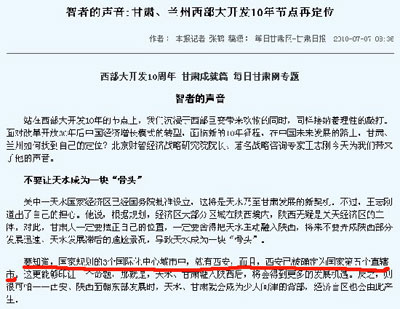 7月7日,《甘肅日報》撰文稱著名戰略咨詢專家王志綱在蘭洽會上透露“西安已被確定為國家第五個直轄市”,記者今天早上與《甘肅日報》取得聯系,當事記者稱,直轄市之說系自己從網絡上搜索到的,并沒有確切消息。