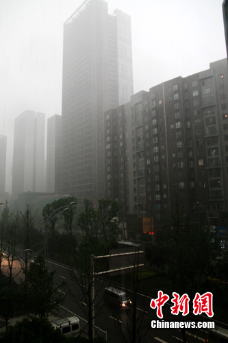 重慶主城籠罩在一片雨霧中。 孟幻 攝