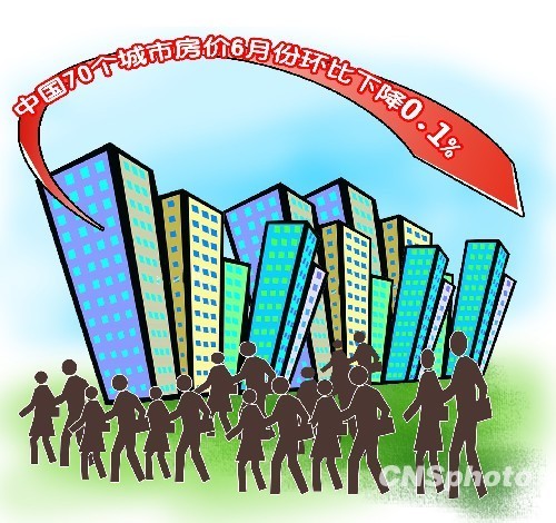 財經漫畫:中國70個城市房價6月份環比下降0.1%。 中新社發 趙乃育 攝