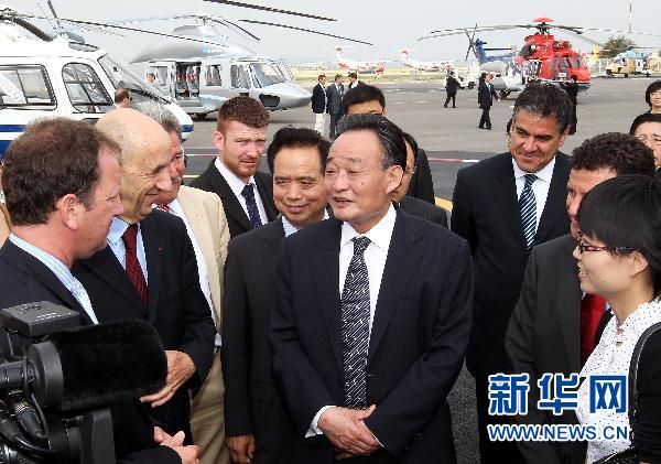 7月13日,正在法國進(jìn)行正式友好訪問的全國人大常委會(huì)委員長吳邦國在馬賽參觀歐洲直升機(jī)公司。 新華社記者 鞠鵬 攝