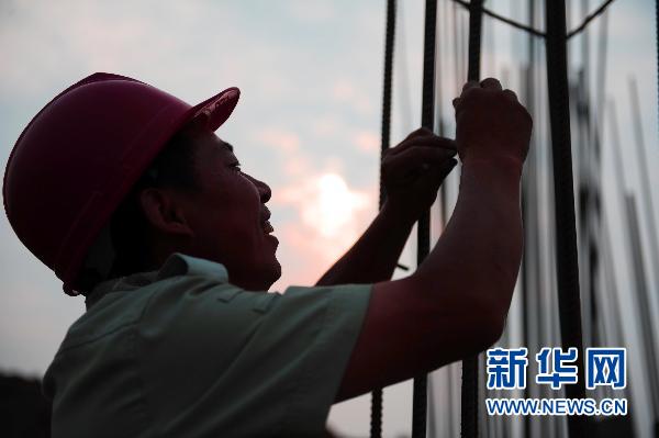 7月7日,在安徽亳州市南部新區建設工地,工人在高溫下工作。當日是農歷小暑節氣,亳州市繼續出現高溫天氣,建設者們在烈日下堅持工作。 新華社發(張延林 攝)