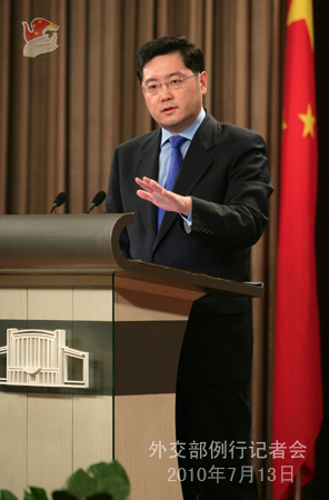 外交部發(fā)言人秦剛15日重申,中方堅(jiān)決反對(duì)任何外國軍用艦機(jī)在黃海及其他中國近海從事影響中國安全利益的活動(dòng),希望有關(guān)各方保持冷靜和克制,不做加劇局勢(shì)緊張的事情。