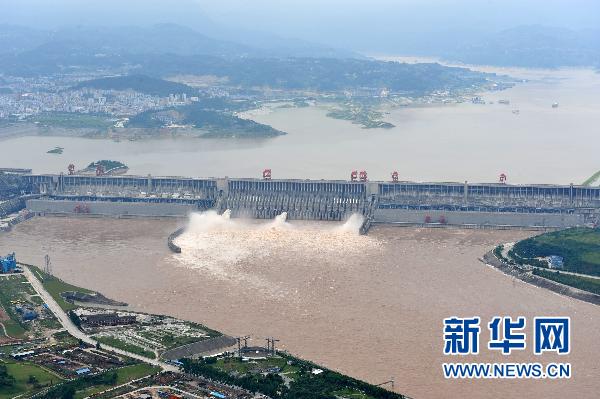 2010年7月17日 三峽大壩接受洪水考驗 攔蓄洪水逾40億立方米 7月16日拍攝的三峽大壩泄洪場景。為緩解長江中下游河段防洪壓力,三峽工程充分發揮防洪效益,今年入汛以來兩輪攔蓄洪水達41.5億立方米。 新華社發(鄭家裕 攝)