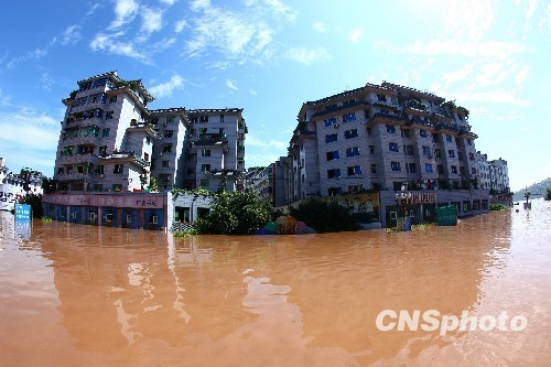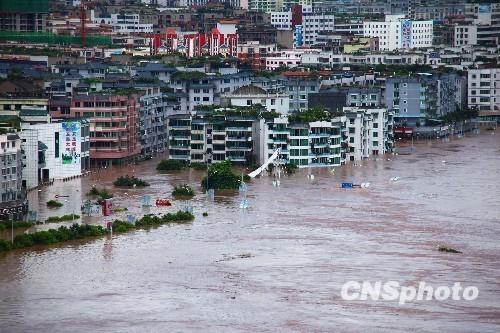2010年7月19日下午,四川省廣安市的市民在安全地帶觀看160年來最大的洪峰通過廣安城區(qū)。四川省渠江上游持續(xù)暴雨,導(dǎo)致位于渠江中下游的廣安河段水位陡漲,爆發(fā)特大洪水。這次洪水是1847年以來廣安發(fā)生的最大洪水。由于抗洪搶險(xiǎn)預(yù)案科學(xué)、及時(shí)地啟動,除基礎(chǔ)設(shè)施損毀嚴(yán)重外,無人員傷亡。 中新社發(fā) 邱海鷹 攝