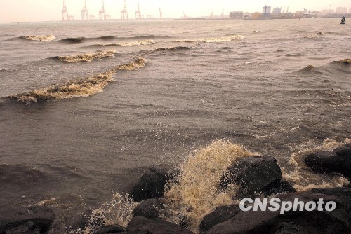 7月22日,受臺風(fēng)“燦都”影響,海南海口出現(xiàn)暴雨天氣。雖然陸地風(fēng)力較小,但海面滾滾浪花不時咆嘯擊岸,海口港碼頭空無船只。據(jù)海南省海洋預(yù)報臺稱,此次臺風(fēng)未在海南沿海形成風(fēng)暴潮,未給海南沿岸地帶造成危害。 中新社發(fā) 潘華清 攝