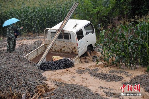 8月12日,甘肅省天水、隴南等地連遭暴雨襲擊,316國道沿線大山壩、麻沿鄉、篩子壩等多處通訊光纜被山洪沖斷,公路40余處出現滑坡、泥石流,通信、交通、電力中斷。目前,工程搶險隊正加緊搶修。中新社發 陳文 攝