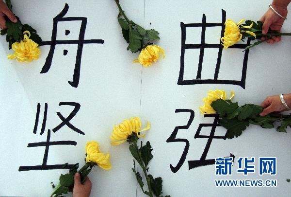 8月14日,山東郯城縣新愛嬰幼兒園的孩子們?yōu)橹矍鲭y同胞獻(xiàn)上黃菊,寄托哀思。當(dāng)日,郯城縣新愛嬰幼兒園開展“情系舟曲大愛無疆”祈福活動,哀悼甘肅舟曲特大山洪泥石流遇難同胞,并為災(zāi)區(qū)祈福。新華社發(fā)(張春雷 攝)