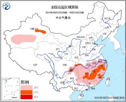 預計,今天白天,四川盆地東南部、重慶大部、湖北南部和東部、安徽中南部、江蘇南部、上海、浙江、江西、湖南、貴州東部、廣西東北部、廣東北部和東部、福建、臺灣北部等地有35~37℃的高溫天氣,其中重慶西南部和東北部、湖南東南部、江西中部、浙江中西部等地的部分地區(qū)氣溫可達38℃。