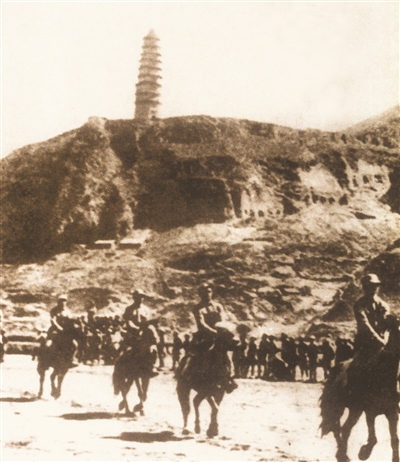 延安寶塔山下的抗日騎兵。斯諾 攝(解放軍報(bào)資料照片)