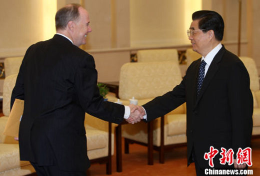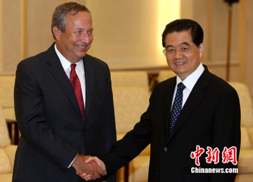 9月8日上午,中國國家主席胡錦濤在北京人民大會堂會見美國白宮國家經(jīng)濟委員會主任薩默斯。中新社記者 任晨鳴 攝