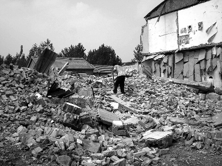 16日中午12時許,記者在現場看到,王軍家的房子已被拆毀,到處是碎磚頭塊和斷裂的樓板。
