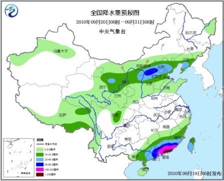 20日08時(shí)至21日08時(shí),新疆沿天山地區(qū)、西藏南部和東部、西北地區(qū)中東部、內(nèi)蒙古西部和中東部偏南地區(qū)、東北地區(qū)南部和東北部、華北、黃淮東北部、四川中北部、云南西部、江南南部、華南大部有小到中雨或陣雨,其中,甘肅河西地區(qū)東部、內(nèi)蒙古河套東部、陜西北部、山西北部、北京、天津北部、河北中北部、遼寧中南部等地的部分地區(qū)有大雨、局地暴雨;福建南部、臺灣中南部、廣東、江西南部、廣西東部等地有大到暴雨;福建東南部、廣東中東部等地的部分地區(qū)有大暴雨、局部特大暴雨;上述地區(qū)局部并伴有短時(shí)雷雨大風(fēng)或冰雹等強(qiáng)對流天氣。新疆北部、甘肅西部、寧夏、內(nèi)蒙古大部、華北北部和東部有4~6級風(fēng),新疆山口地區(qū)風(fēng)力可達(dá)7~9級。受“凡亞比”影響,東海南部有6~8級東南風(fēng);臺灣海峽、南海北部有7~9級大風(fēng),部分海域風(fēng)力可達(dá)10~11級,臺風(fēng)中心經(jīng)過的附近海域有12~13級大風(fēng);臺灣以南海域有6~7級、陣風(fēng)8級的偏南風(fēng)。渤海有4~5級增加到6~7級的東北風(fēng)。