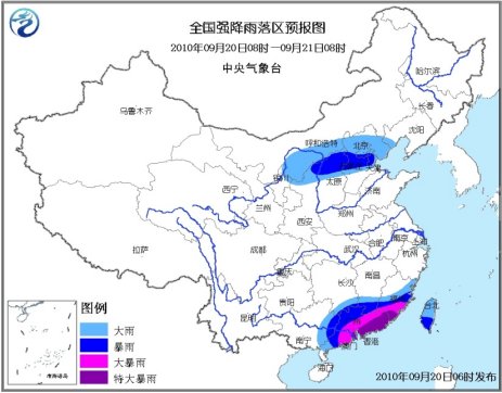 中央氣象臺(tái)9月20日06時(shí)繼續(xù)發(fā)布暴雨藍(lán)色預(yù)警:9月20日08時(shí)到21日08時(shí),浙江東南部、福建東部和中南部、江西南部、湖南東南部、廣東大部、廣西東部、臺(tái)灣等地將有大到暴雨,福建東南部、廣東中東部等地的部分地區(qū)有大暴雨,局地有特大暴雨。
