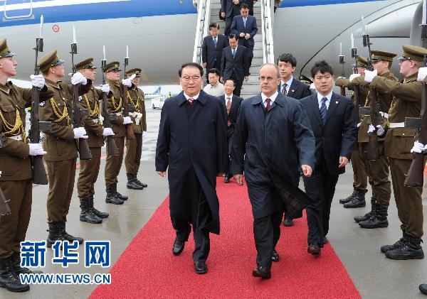 資料圖片:9月21日,中共中央政治局常委李長春抵達塔林,開始對愛沙尼亞共和國進行正式友好訪問。這是愛沙尼亞政府官員等前往機場迎接。新華社記者馬占成攝