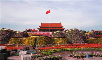 昨天,經過近一周施工,天安門廣場的擺花工程終于收尾,直徑50米的巨型“牡丹”露真容。負責此處擺花工程的北京花木公司表示,目前正在進行的是“牡丹”花壇燈光及噴泉的調試,預計25日天安門及長安街沿線花壇的擺放工程將整體完工。本報實習記者趙恩澤 記者王碩 攝影報道