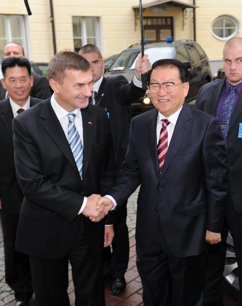 當(dāng)?shù)貢r(shí)間9月21日,中共中央政治局常委李長(zhǎng)春在塔林會(huì)見(jiàn)愛(ài)沙尼亞總理、改革黨主席安德魯斯·安西普。 新華社記者 馬占成 攝