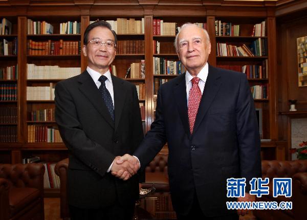 10月3日,中國國務院總理溫家寶在雅典會見希臘總統帕普利亞斯。新華社記者龐興雷攝