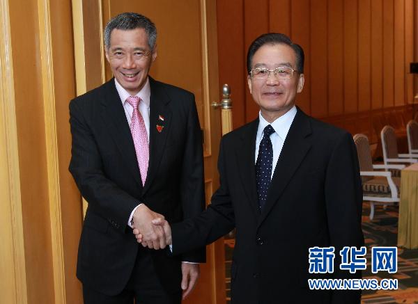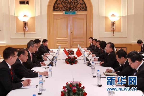 10月29日,中國國務院總理溫家寶在越南河內會見新加坡總理李顯龍。 新華社記者龐興雷攝