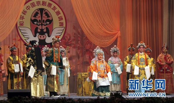 10月21日,北京市京劇票友演出京劇《打龍袍》。為期5天的第十屆“和平杯”中國京劇票友邀請賽決賽10月19日在天津市中國大戲院拉開帷幕,中外京劇票友齊聚一堂,角逐新一屆中國京劇“十大名票”。新華社發(孫繼武 攝)