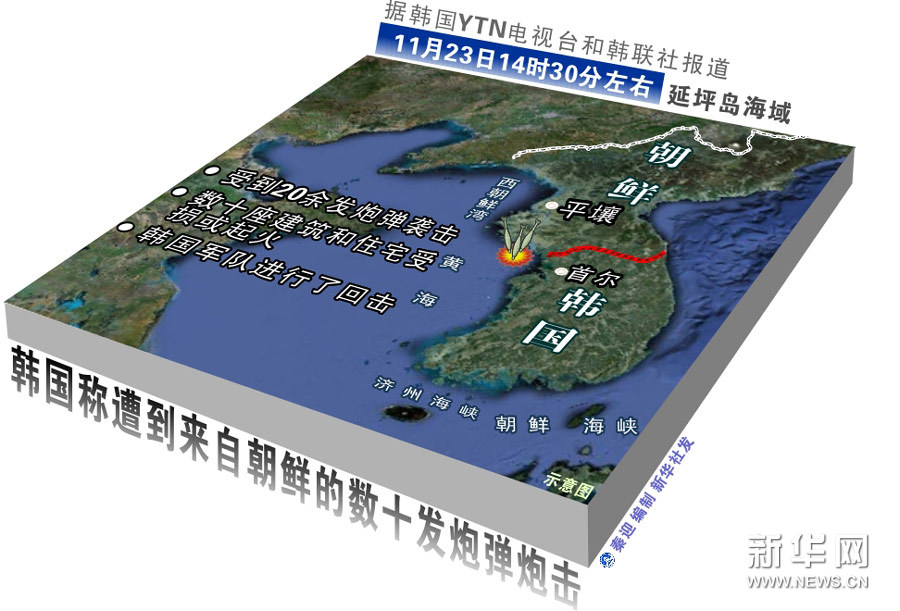 圖表:韓國(guó)稱遭到來(lái)自朝鮮的數(shù)十發(fā)炮彈炮擊 新華社發(fā)