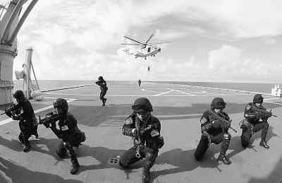 “發現可疑海盜船只!”“一級戰斗部署!”“直升機起降部署!”“發射震爆彈!”“開槍警告射擊!”……