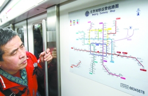 昌平線、亦莊線等五條新地鐵線今日將開通運營。昨天,正在運營的地鐵列車各車廂內(nèi)紛紛換上了新的地鐵線路圖,詳細(xì)標(biāo)明了各站名稱和換乘地點,引起乘客的普遍關(guān)注。記者 李繼輝攝